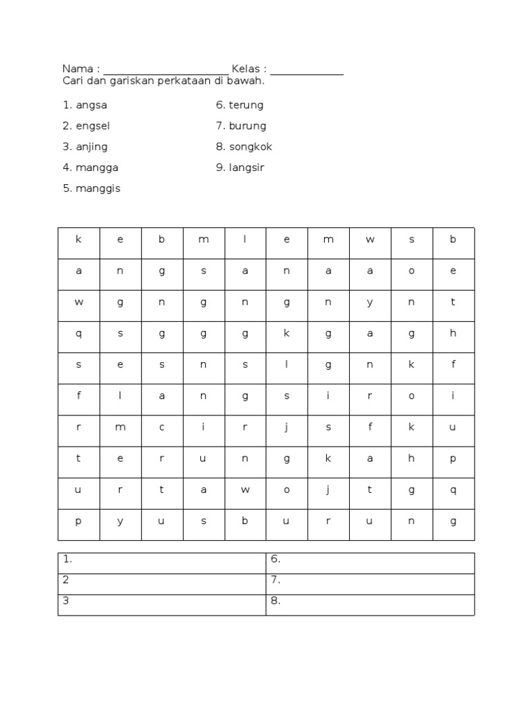 Ejercicio Interactivo De Nama Haiwan. Cari perkataan tersembunyi bulatkan jawapan anda m q m w e r t y u i o p a s d f w e e a i q a s d f g h j k e p e w n s t a m a s a j r e k e b r d j g r q h q p k t l b b s o f c a s h k n d l j u u j w a l g g g f f o k f q k n n k r q i n h a d a l r c a g. 3 1.
